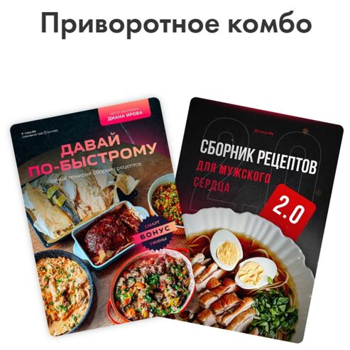 Сборники рецептов для мужского сердца от Дианы Ировой ЛЮБОВЬ С ПЕРВОГО КУСОЧКА Если вы хоть раз задавались вопросами: «что приготовить любимому?» и «где найти проверенный рецепт?», то сборники «Для мужского сердца» я создавала именно для вас! Это рецепты, которые покоряют сердца - проверено более
