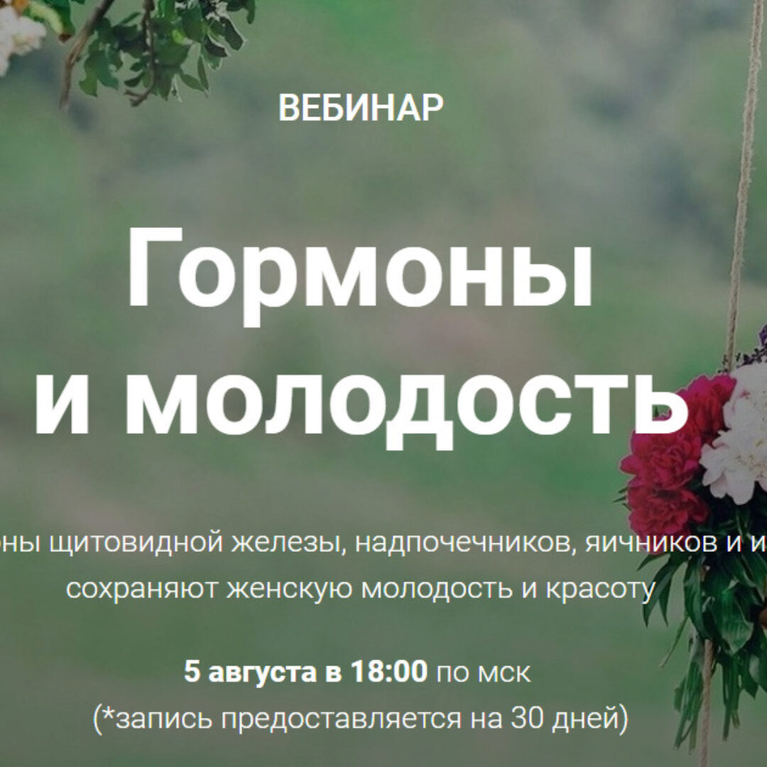 Интенсив Гормоны и молодость Как гормоны щитовидной железы, надпочечников, яичников и инсулин сохраняют женскую молодость и красоту Диляра Лебедева 13.12.2020 Вы узнаете: Что такое гормональное старение Гормоны и вес Нарушение цикла и инсулино-резистентность Гипотиреоз и как его правильно лечить