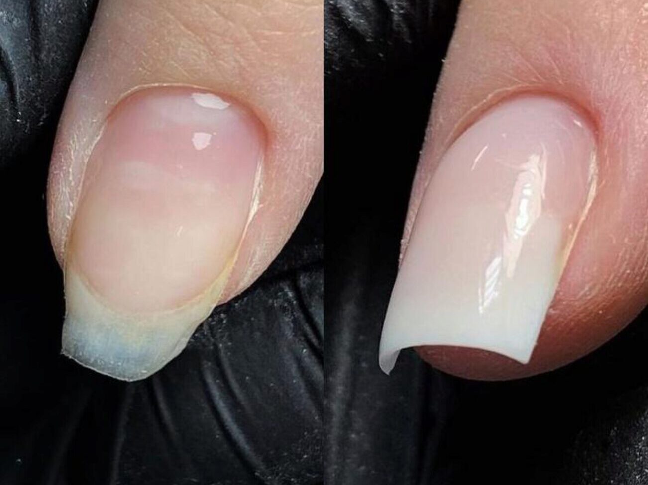 Восстановление архитектуры квадрата гелем без постановки форм и пр. Укрепление гелем без поверхностного опила