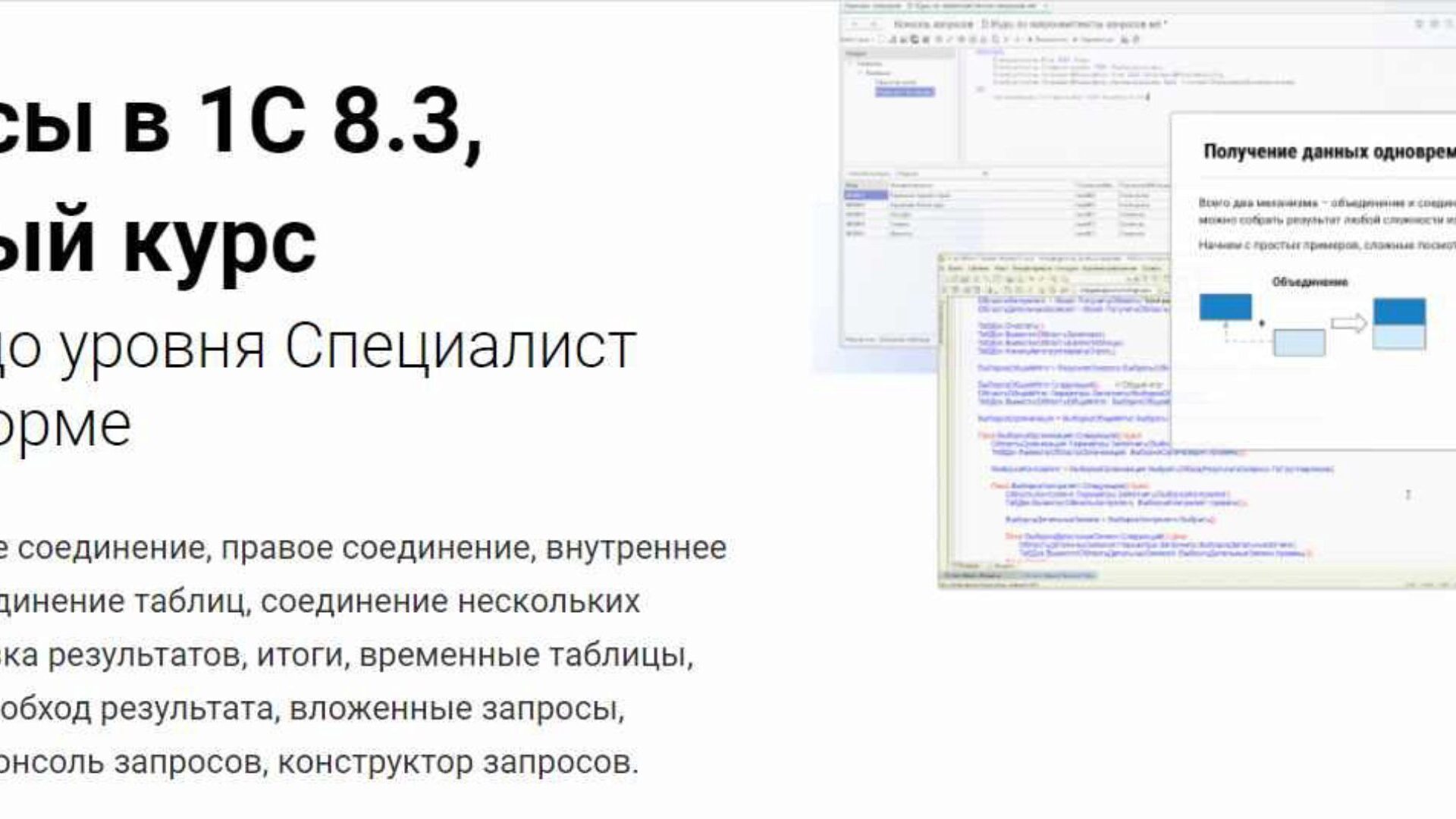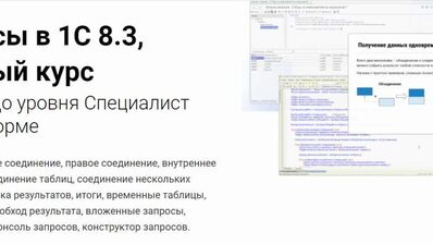 Колоссальный курс про построение, анализ и оптимизацию запросов в 1С – более 50 учебных часов! Самое подробное рассмотрение нюансов и деталей – и для начинающих, и для программистов с опытом в несколько лет. Чтобы успешно пройти этот курс, желательно иметь общее представление о разработке в 1С,
