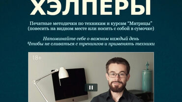 16 хэлперов одним большим комплектом: «Скейпинг», «Родитель - Ребенок», «Связь с реальностью - Контакт с собой», «Принцип Зеркала», «(Без)Денежные Привычки», «АнтиКризис», «АнтиСаботаж», «Личная Финансовая Система», «Стратегия Жизни», «Градиент Матрицы», «Градиент: Кросскультурность», «Градиент: Области Жизни», «Градиентные Отношения: Мужчина», «Градиентные Отношения: Женщина», «Карта иллюзий: Деньги», «Карта иллюзий: Отношения».