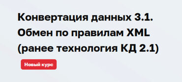 Курс предназначен для ознакомления с возможностью организации обмена между конфигурациями «1С:Предприятие» по правилам XML с использованием 1С:Конвертация данных 3.1 (ранее технология «Конвертация данных 2.1).
