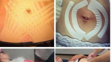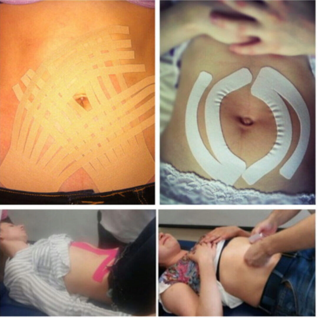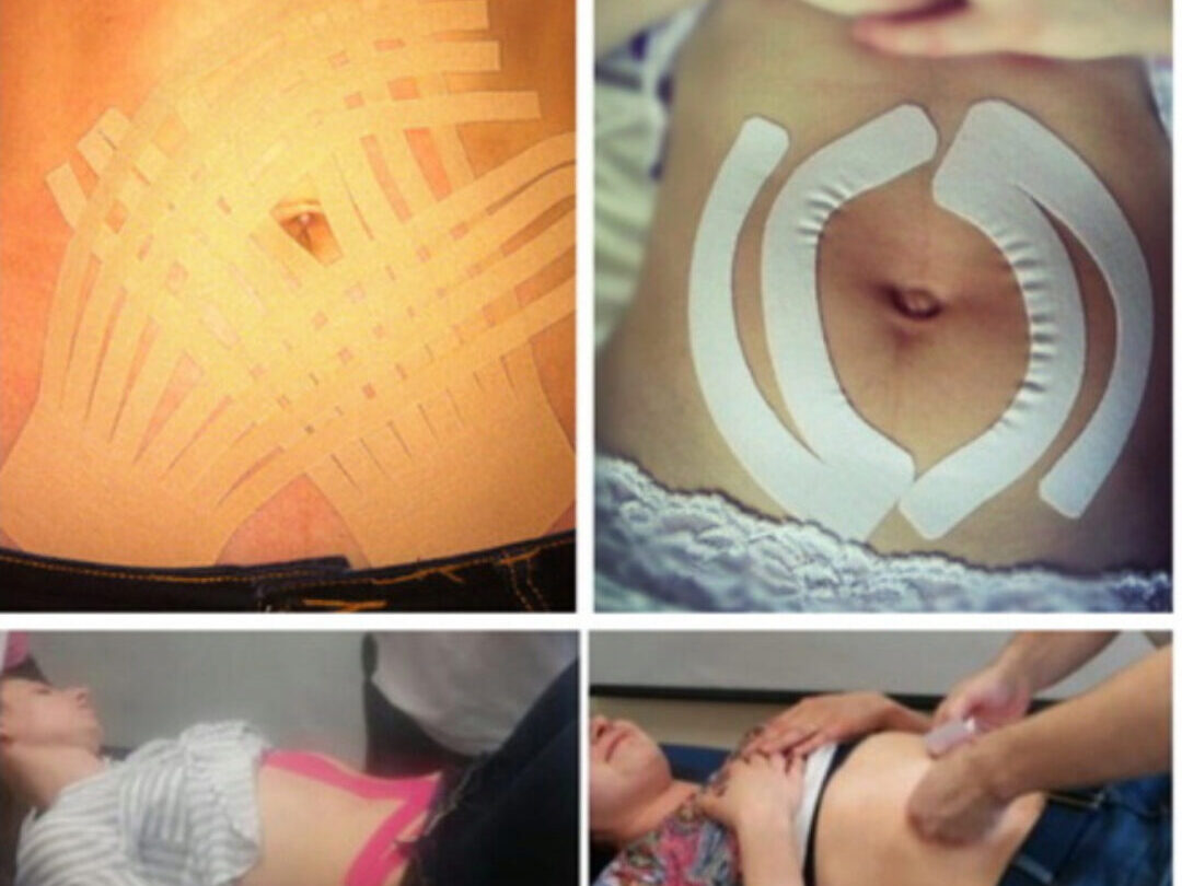 Марафон по решению проблемы с лишним весом, особенно в зоне талии и живота популярным методом тейпирования. Оно же помогает и при диастазе (расхождение брюшных мышц). Как тейпы помогают в этих случаях? Тейпы наклеиваются специальным образом на живот с натяжением, чтобы мышцы начали включаться и
