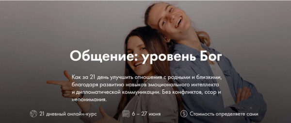 Я начал его создавать как легкий марафончик, дающий основы, но затем понял, что это не то качество, которое я хочу давать в мир. Поэтому я принял решение выпустить проработанный полноценный курс, содержащий в себе все лучшее, что помогает наладить отношения с родными, близкими и вывести свои навыки общения на новый уровень.