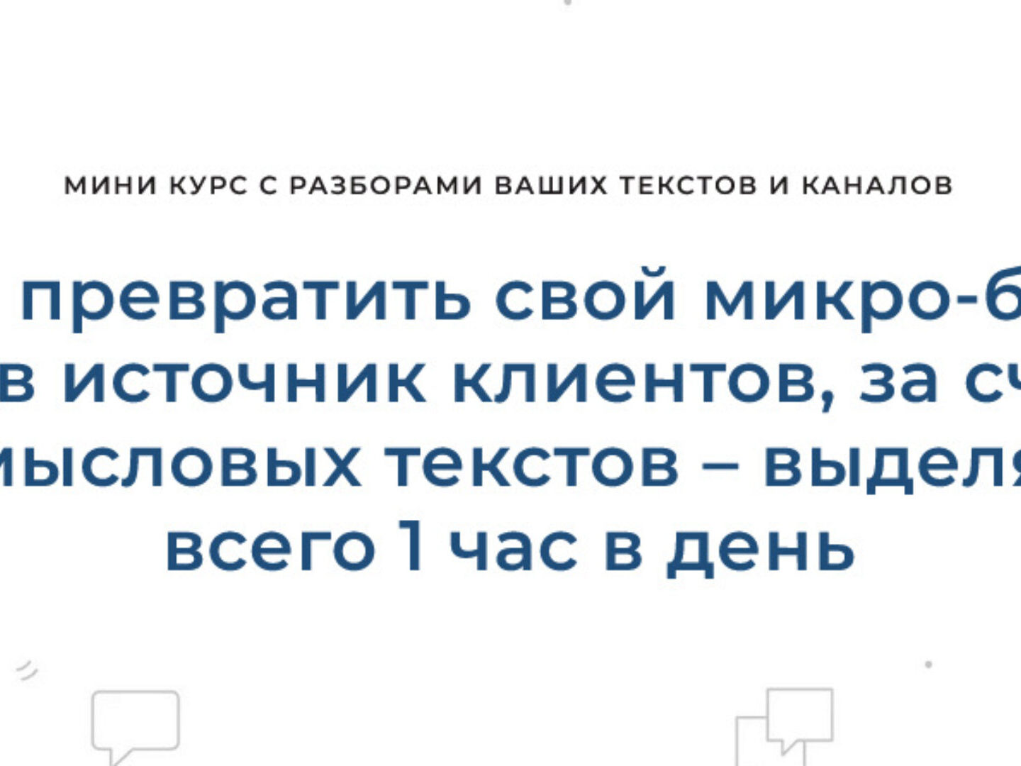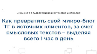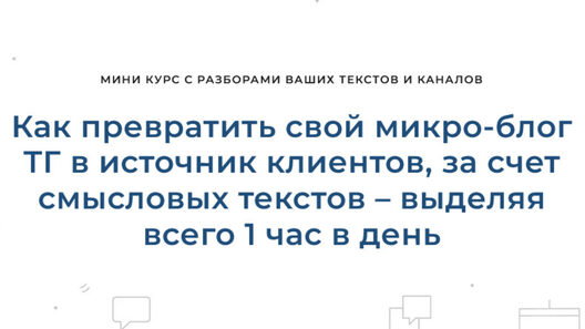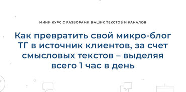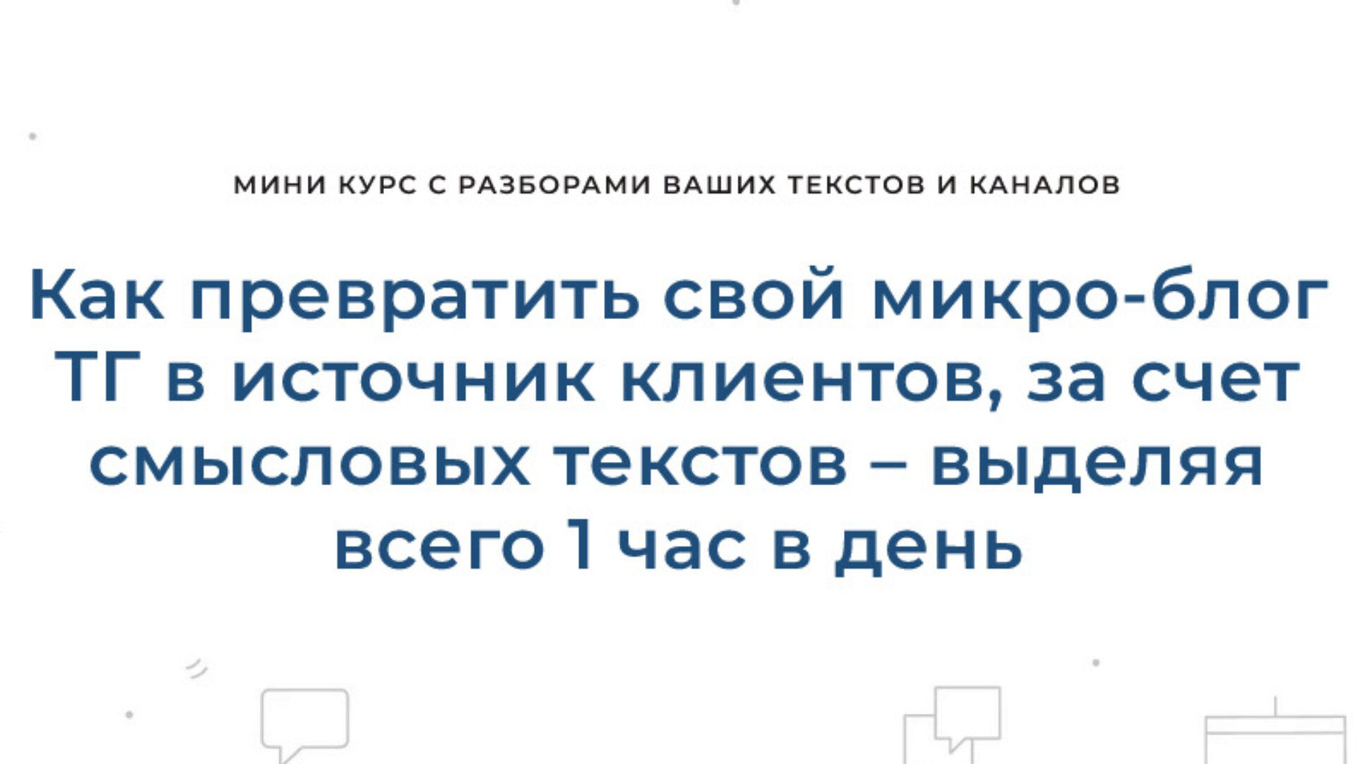 Дмитрий Коренко «Как превратить свой микро-блог ТГ в источник клиентов, за счет смысловых текстов – выделяя всего 1 час в день» слив скачать
