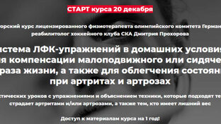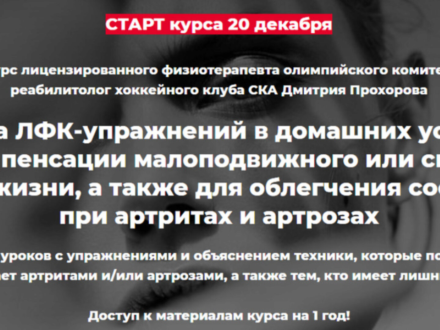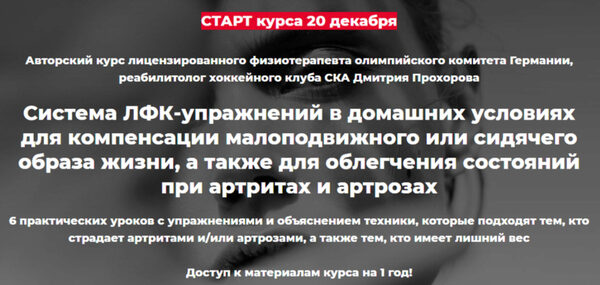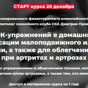 Курс ЛФК-упражнения в домашних условиях для компенсации малоподвижного образа жизни, автор Дмитрий Прохоров. Авторский курс лицензированного физиотерапевта олимпийского комитета Германии, реабилитолог хоккейного клуба СКА Дмитрия Прохорова
