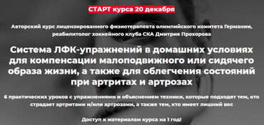 • Каждое из упражнений можно делать в домашних условиях без специального оборудования, подойдет если у вас есть артрит и/или артроз I-II-III стадии (и даже IV стадии, если вы боитесь операции и хотите попробовать консервативно)