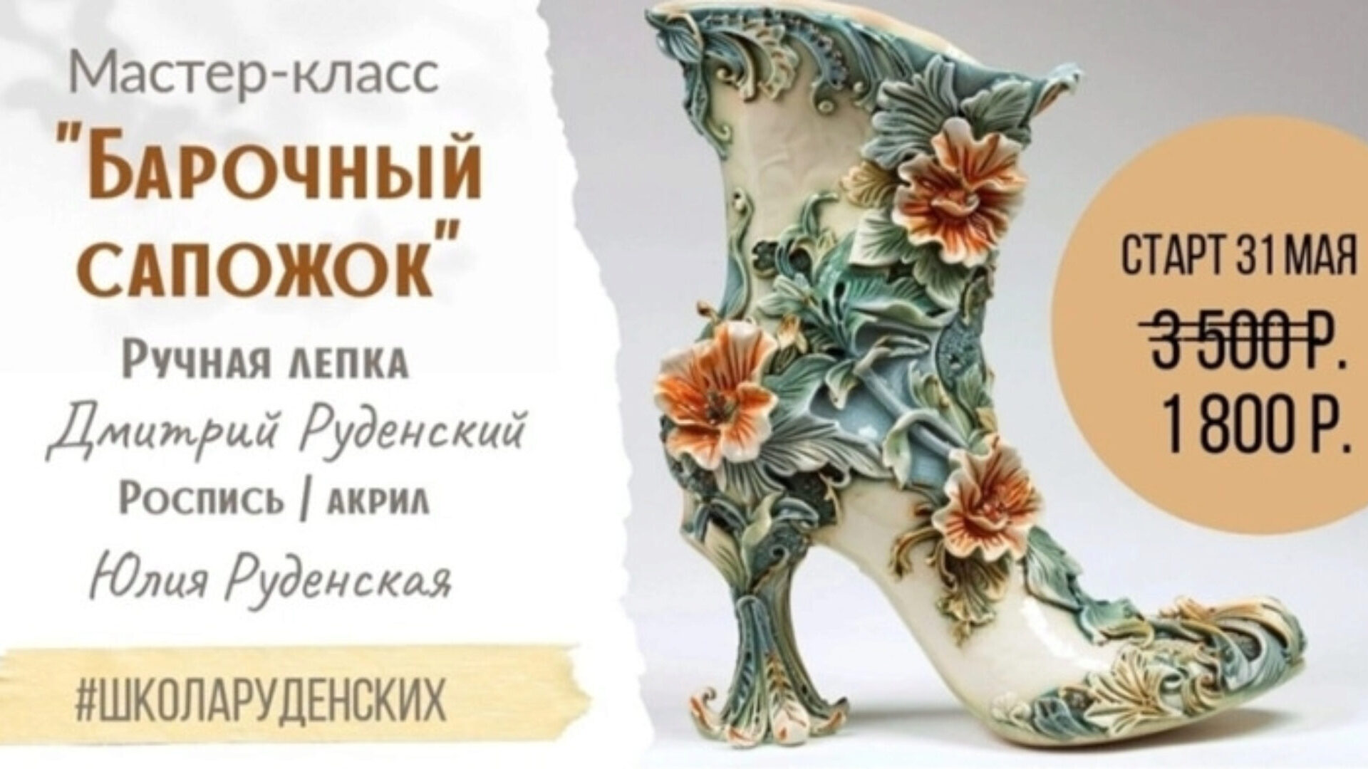 Курс Барочный сапожок, автор Дмитрий Руденский, Юлия Руденская. Хотите раскрыть свой потенциал и создать нечто по-настоящему уникальное? Тогда этот мастер-класс для вас! Под руководством опытных мастеров, Дмитрия и Юлии, вы окунетесь в мир творчества и создадите модель элегантного сапожка, украшенного барочными вензелями и цветами.