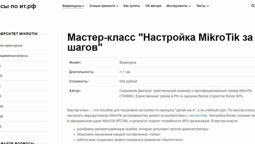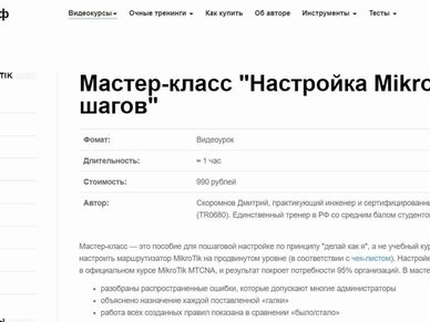 Отзывы о курсе Мастер-класс «Настройка MikroTik за 15 шагов» 2019 от Дмитрия Скоромнова