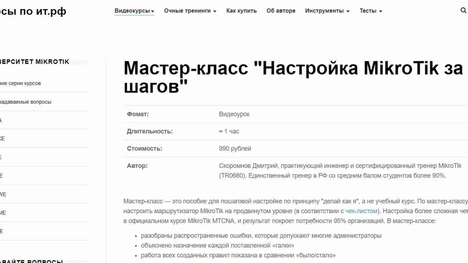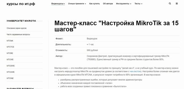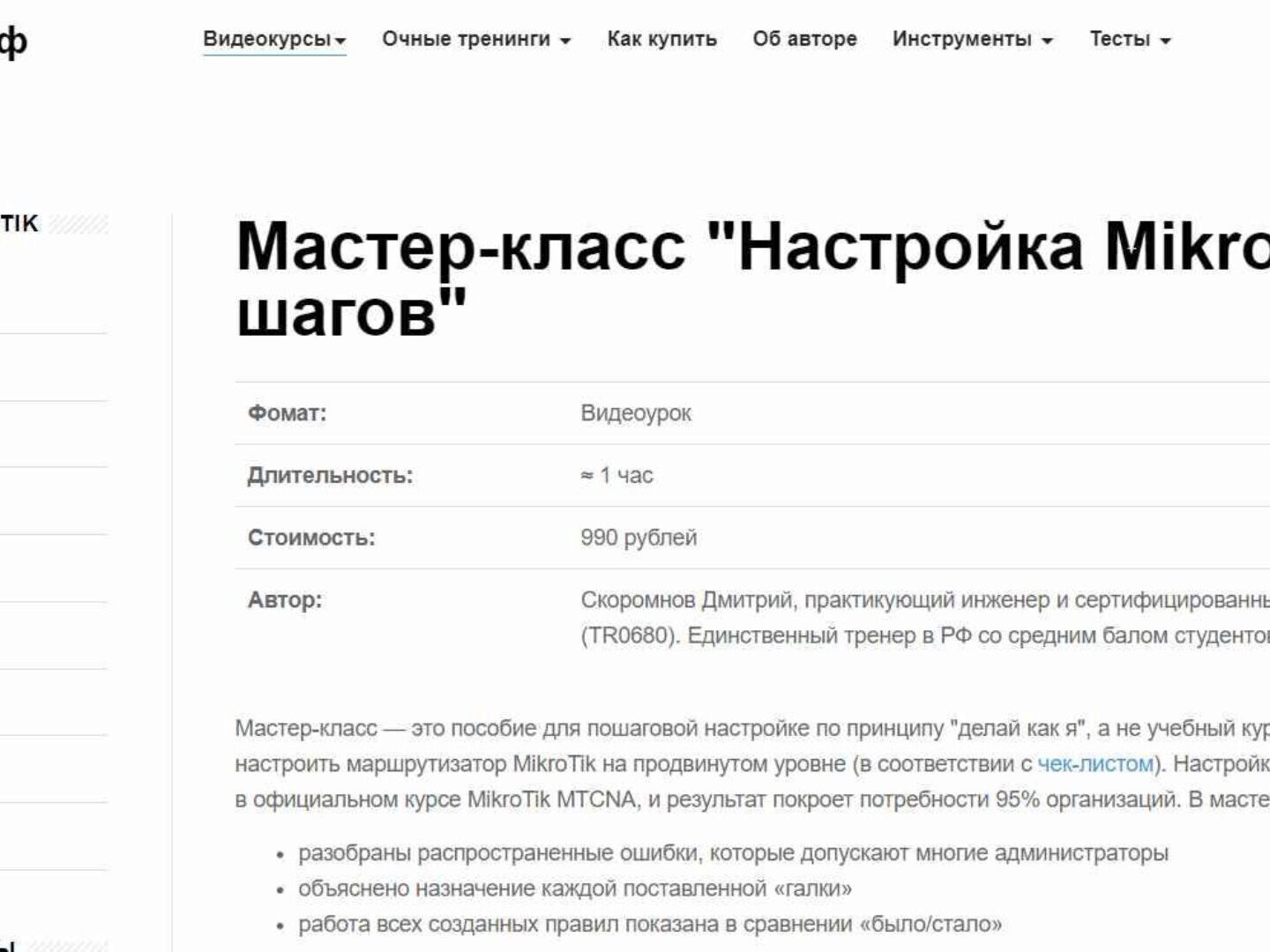 Почему курс Мастер-класс «Настройка MikroTik за 15 шагов» 2019 стоит всего 1280 ₽?