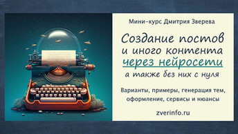 Курс Создание постов и иного контента через нейросети, автор Дмитрий Зверев. Создавайте ценный привлекательный контент для ваших социальных сетей, страниц, писем, презентаций, воронок продаж и повышайте конверсию!