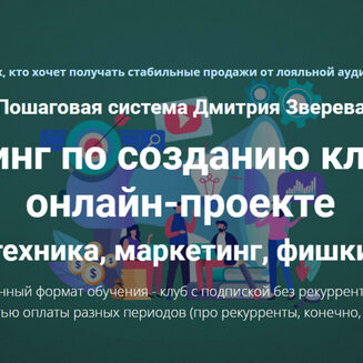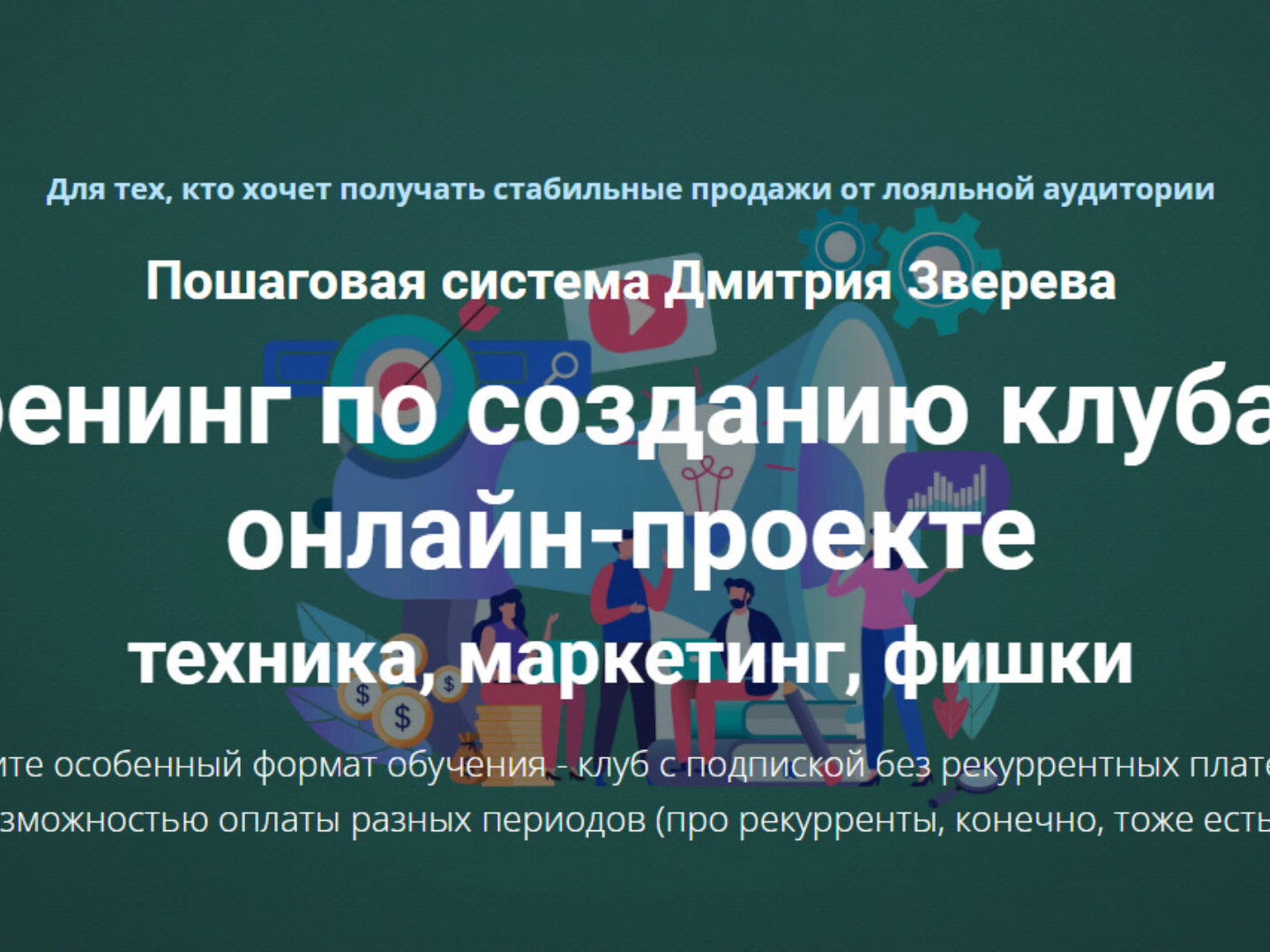 Курс Тренинг по созданию клуба в онлайн-проекте, автор Дмитрий Зверев. Меня зовут Дмитрий Зверев.