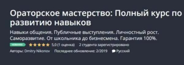 Отзывы о курсе [Udemy] Ораторское мастерство: Полный курс по развитию навыков (Dmitry Nikonov)