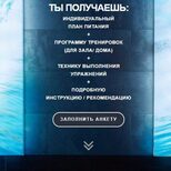 700-800 Калл за одну тренировку! О Программе: Максимальная просушка тела План питания на 10 дней + видео-рецепты Йога для похудения и омоложения Многофункциональные тренировки Повышение метаболизма во время тренировки и после в течение 36 часов Тренировки один на один со мной Уникальные упражнения