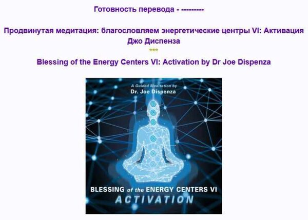 Джо Диспенза «Продвинутая медитация: благословляем энергетические центры VI: Активация» слив скачать