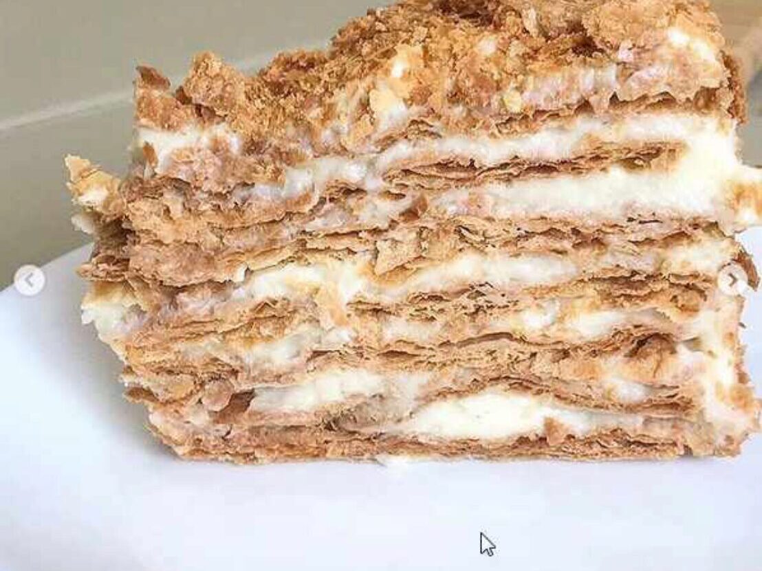 Самый вкусный Наполеон из всех какие я пробовала! В меру слоистый, в меру пропитанный, кстати крем совершенно без масла в отличии от традиционных наполеонов, поэтому он легче усваивается и не такой калорийный. Съели мы его за один день, потому что остановиться, пока он был, было невозможно