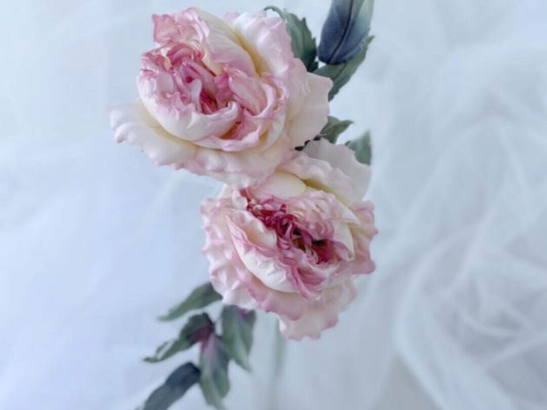 Курс Роза Мальмезон, автор Elena Fiore. Невероятно красивая и изысканная роза, выполненная из натурального японского шелка, с использованием базового набора инструментов.