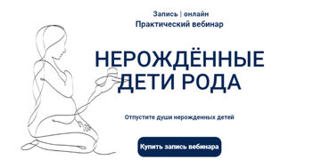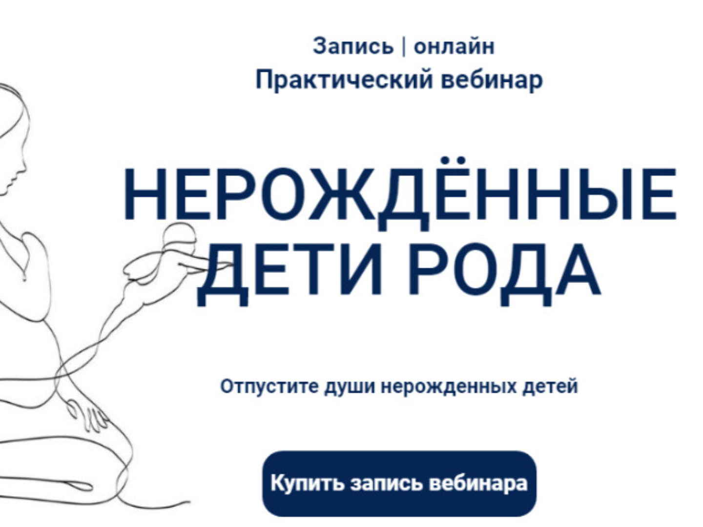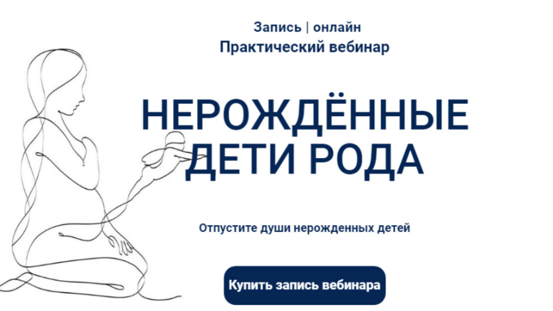 3 часа. На этом вебинаре у вас есть возможность исцелить боль по нерожденным детям: своим собственным и детям своего рода (мамы, бабушек, прабабушек), снять негативное влияние этого на свою жизнь и жизнь своих детей и потомков. Принять нерожденных детей в своё сердце