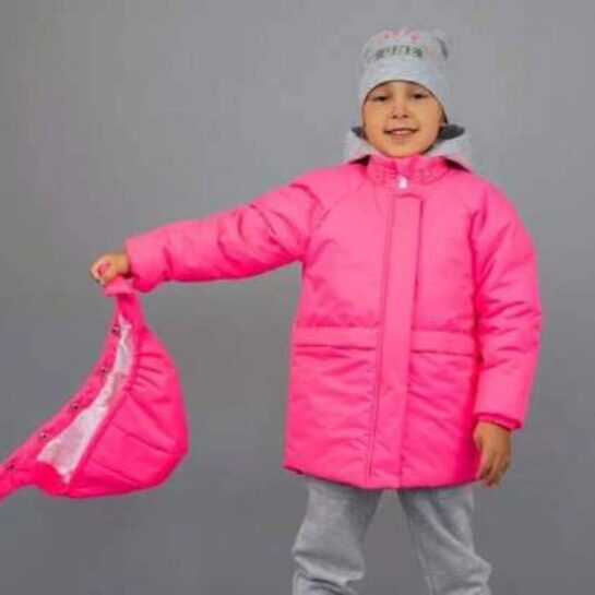 Куртка большого объёма, прямого силуэта, с капюшоном. Центральная застёжка на разъёмную молнию. Молния закрыта ветрозащитной планкой, застёгивающейся на ленту велкро (липучка). По переду куртки - горизонтальная декоративная складка, переходящая в цельнокроеный карман. Рукав покроя реглан. По низу рукава- резинка. Воротник- стойка. Капюшон -съёмный, со стойкой спереди и застёжкой на ленту велкро (липучка). К куртке капюшон крепиться на кнопки. По переднему срезу капюшона частично проходит резинка (с двух сторон). Ткань – мембрана.