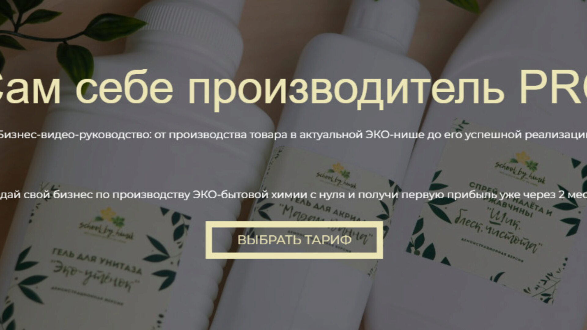 Можно ли экологичную и безопасную для здоровья уборку сделать экономной и эффективной? С уверенностью и даже гордостью отвечаю: «МОЖНО!». Пройдя Курс «Сам себе производитель», вы научитесь изготавливать все необходимые для уборки и стирки эко-средства своими руками и будете экономить от 2 до 5 раз по сравнению с покупкой готовых. Все рецепты разработаны мною: химиком- технологом, учителем химии, проанализировавшим тысячи различных составов и не имеют никакого отношения к «народным рецептам», гуляющим в интернете.