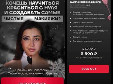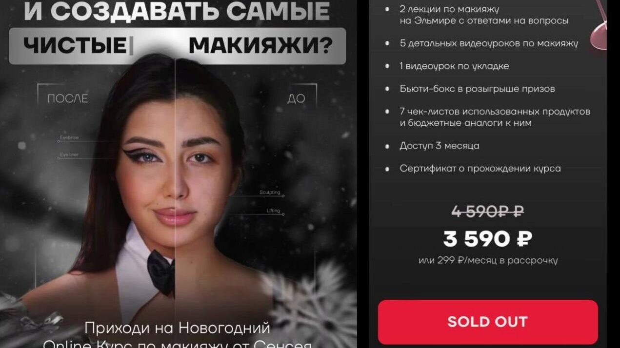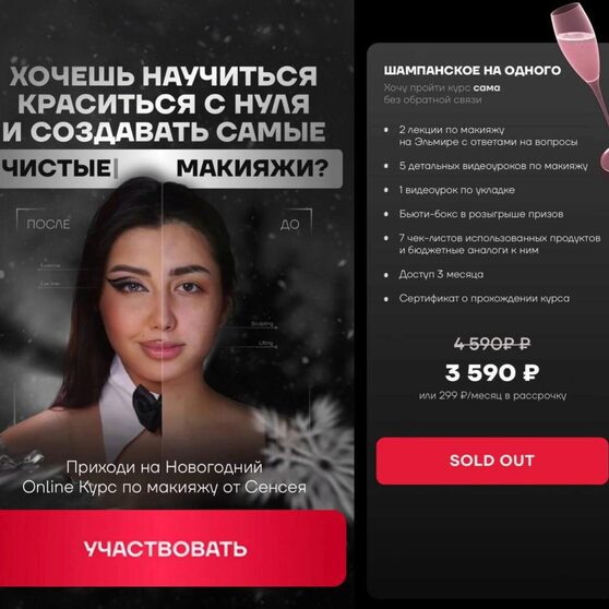 ⁃ к курсу ничего покупать не нужно и вы не обязаны в спешке повторять макияжи: у вас будет доступ к урокам от 3 месяцев