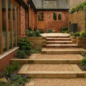 Изученв разные типы уровней, от ступенек до пандусов, подпорных стен и наклонных переходов. Особое внимание уделено изучению возможностей участка для наиболее выгодной реализации потенциала сложного рельефа.
