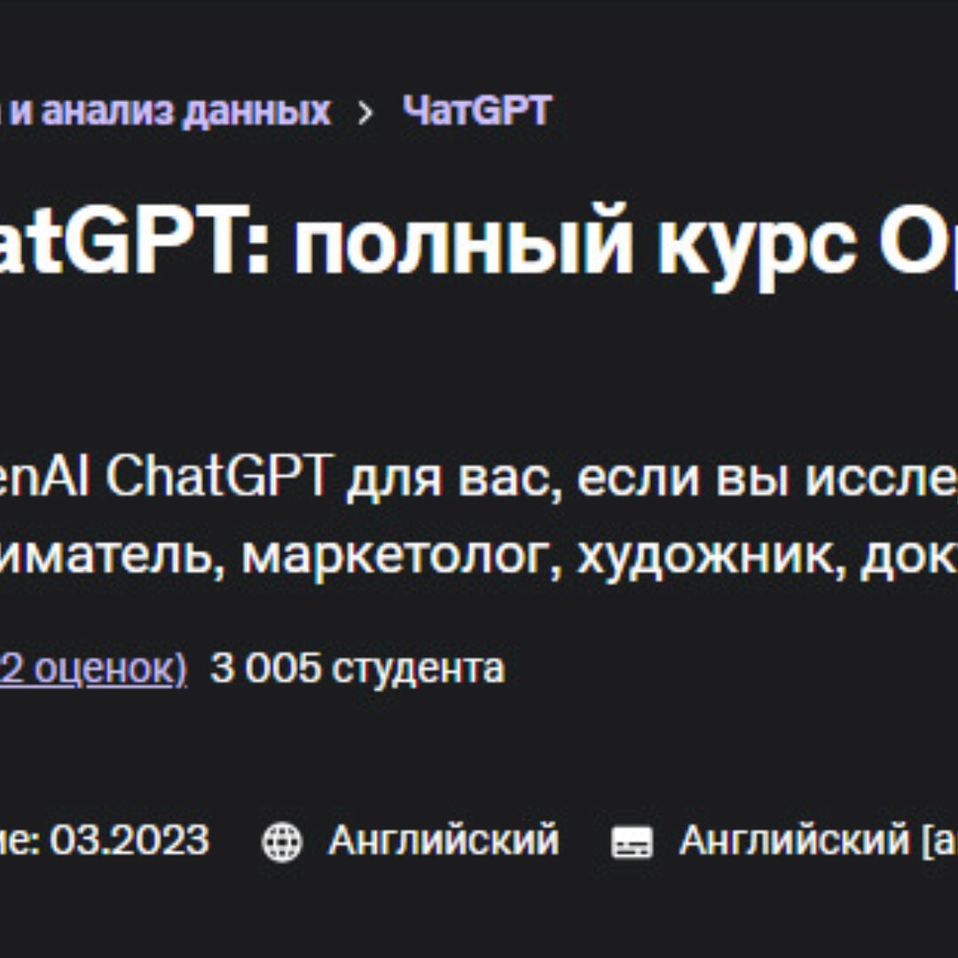 Почему курс «Мастер ChatGPT: полный курс OpenAI ChatGPT» стоит всего 1110 ₽?