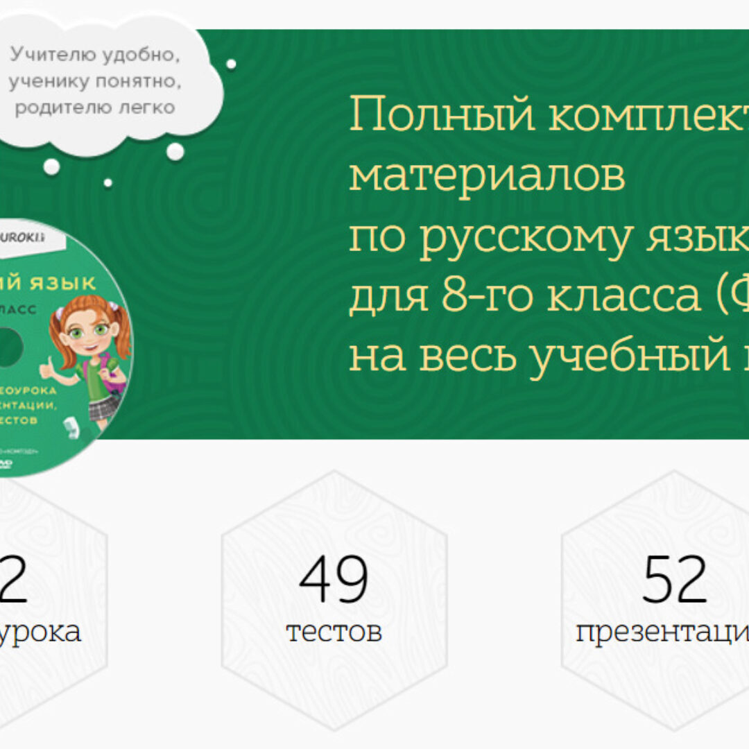 Содержит 42 видеоурока, 42 презентации и 39 тестов. Разработан в помощь учителям русского языка и учащимся 9 класса. Ориентирован на учебник Тростенцовой Л. А., Ладыженской Т. А. Соответствует ФГОС.