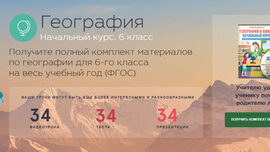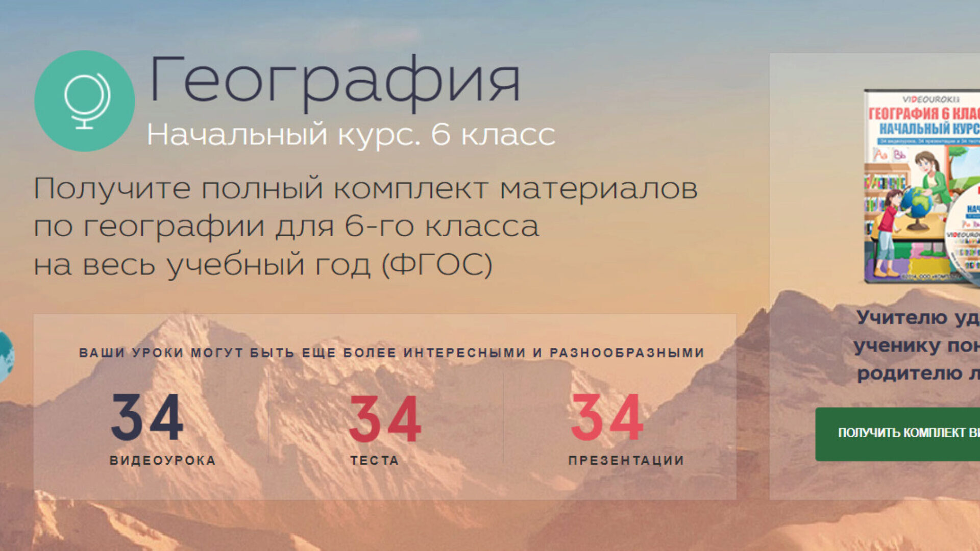 Курс Videouroki - Полный комплект материалов по географии для 6-го класса на весь учебный год (ФГОС), автор Дмитрий Тарасов. Содержит 34 видеоурока, 34 теста и 34 презентации