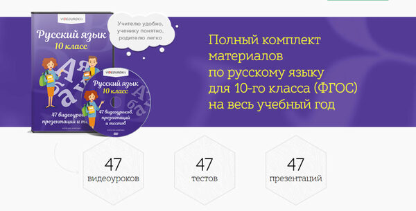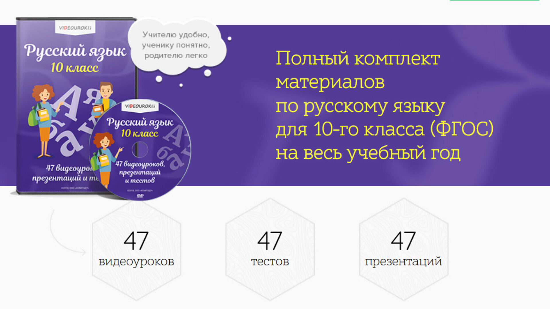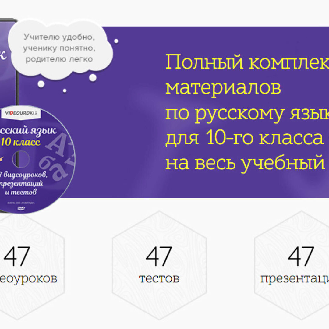 - Содержит 47 видеоуроков, 47 презентаций, 47 тестов.