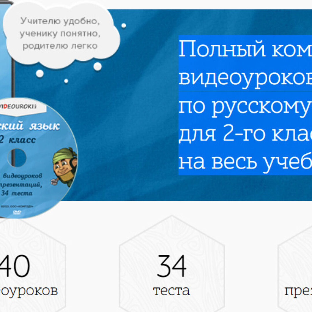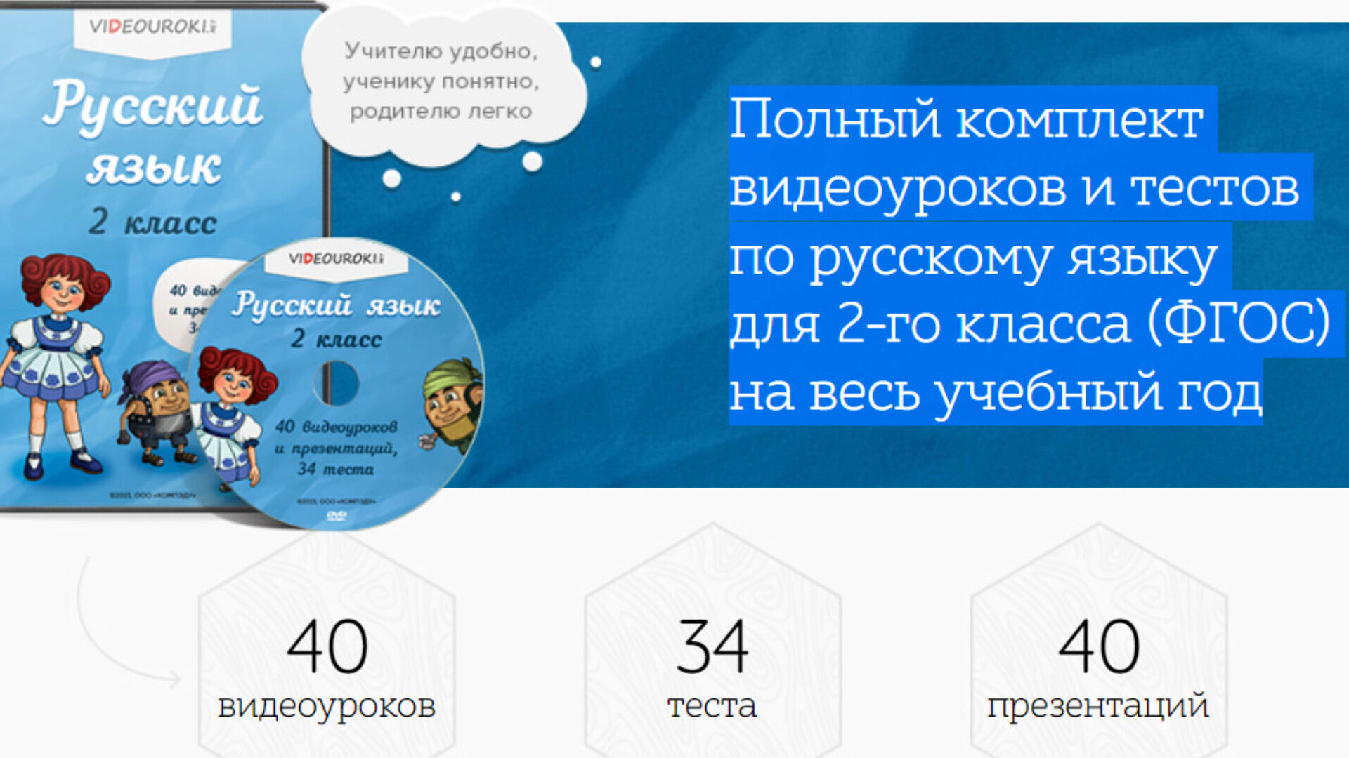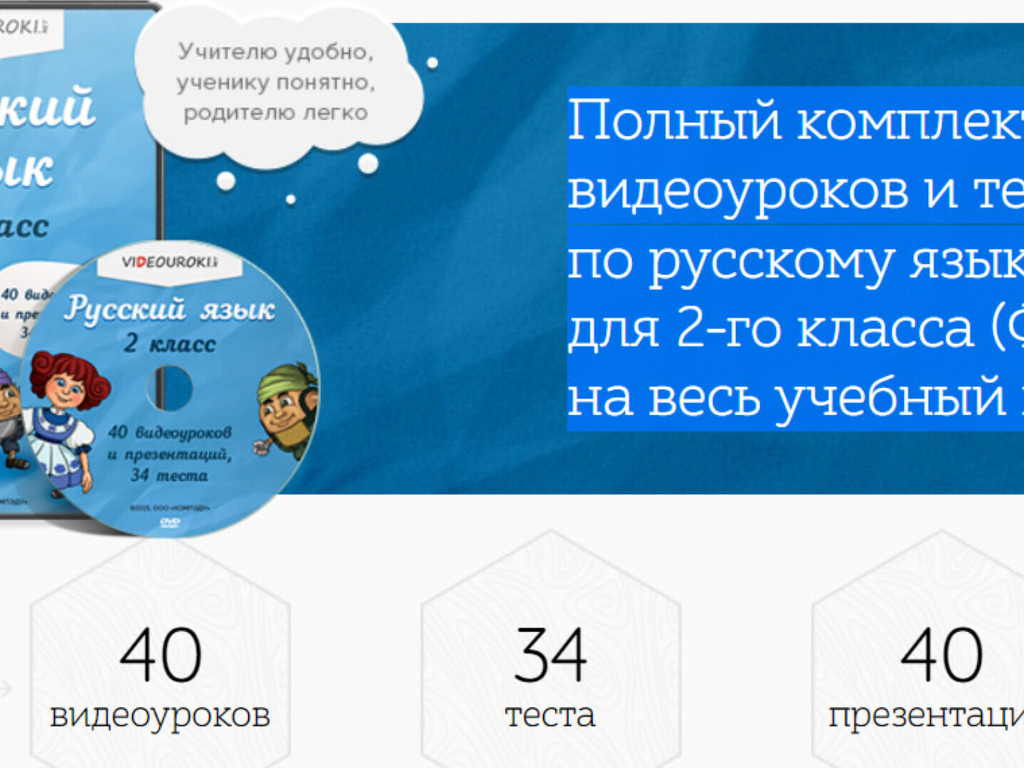 Курс Videouroki - Полный комплект видеоуроков и тестов по русскому языку для 2-го класса (ФГОС) на весь учебный год, автор Дмитрий Тарасов.