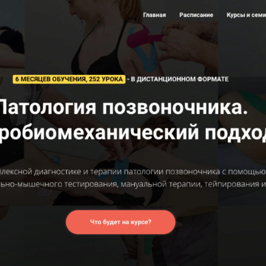 Курс «Патология позвоночника. Нейробиомеханический подход» состоит из 6 тематических модулей, длительность обучения на каждом из них - 1 месяц. Модули курса содержат набор теоретических и практических уроков.