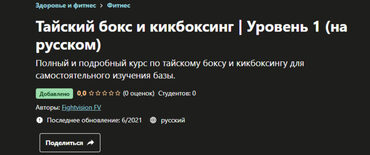 В этом курсе вы изучите основы тайского бокса и кикбоксинга от уровня 1 (стойки и удары руками) до уровня 2 (удары локтем, коленом и базовые удары ногами) и уровня 3 (высокие и сложные удары ногами, комбинации ударов руками и ногами, работа с мешком).