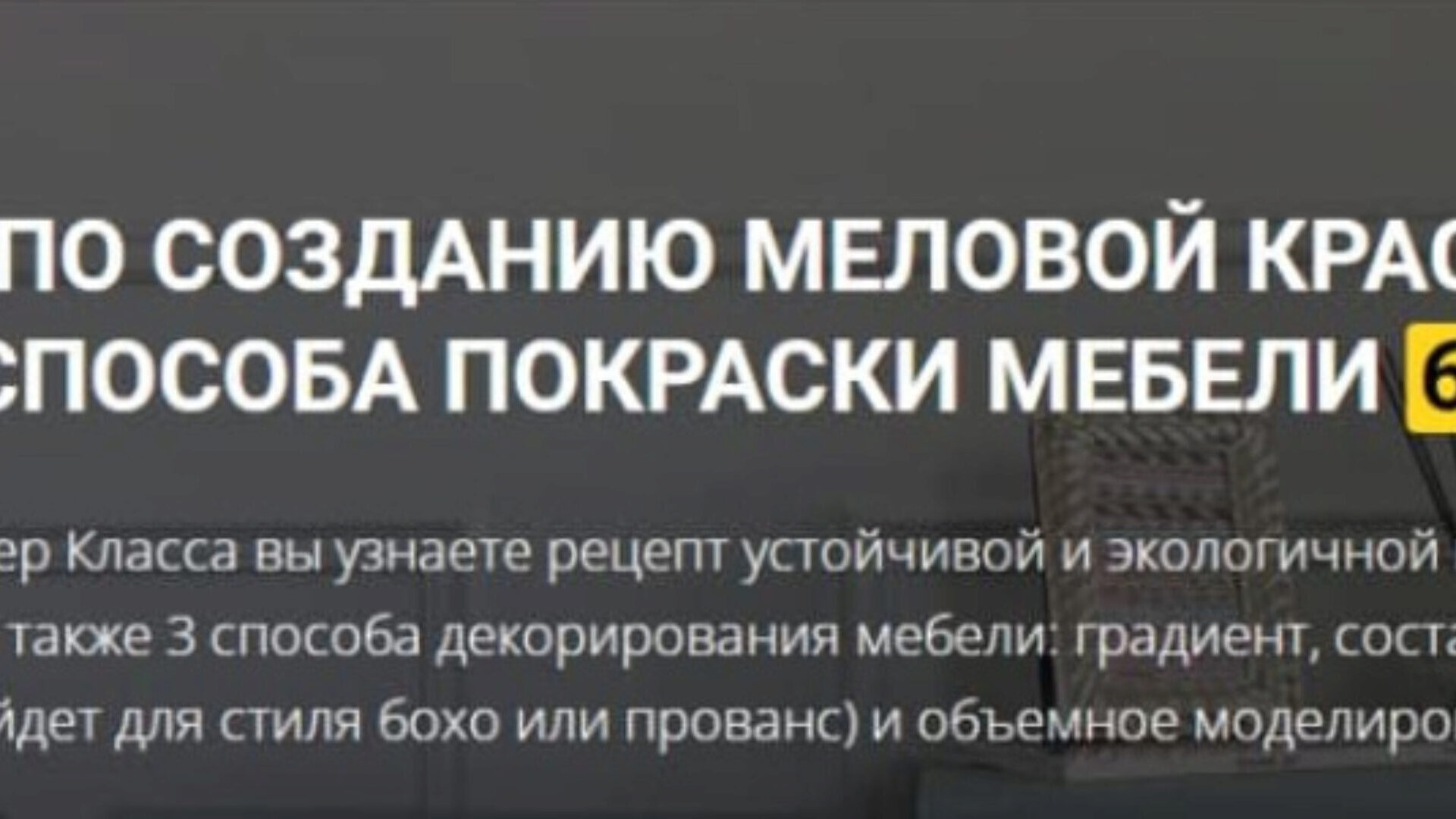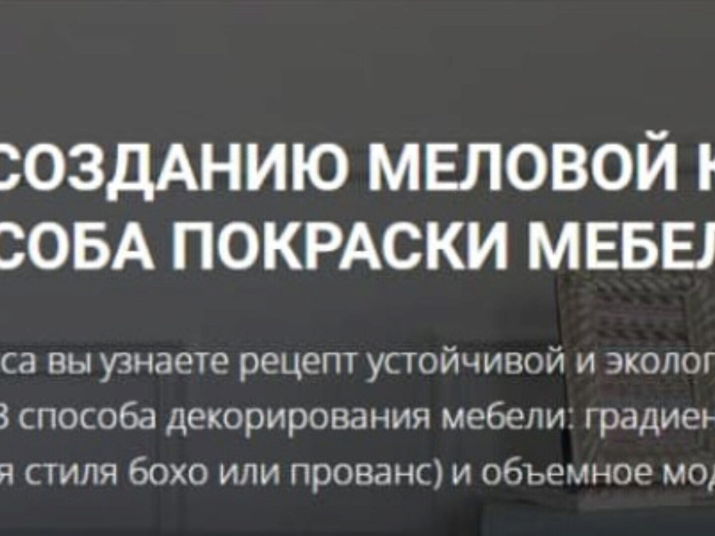 Онлайн-курс обучения перекраске мебели своими руками. Программа будет полезна как профессиональным декораторам желающим научиться новым техникам перекраски старой и новой мебели, используя разнообразные техники декора, так и тем, кто желает сэкономить на услугах и самостоятельно придать своей