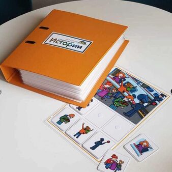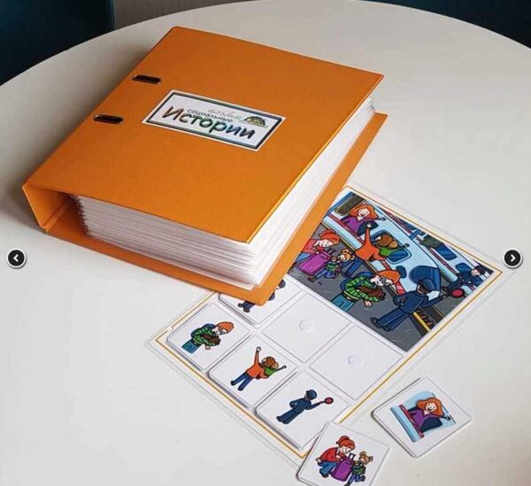 Ребенку нужно в правильной и последовательности собрать карточки из различных социальных историй: