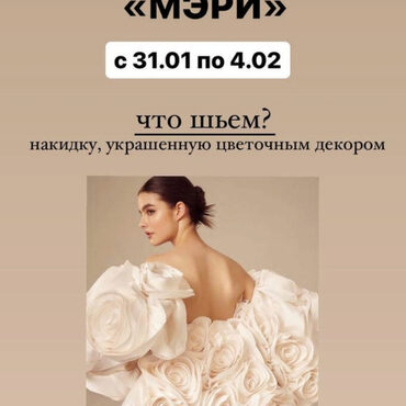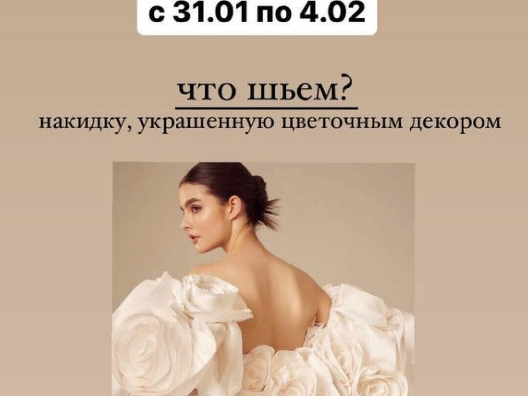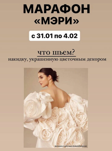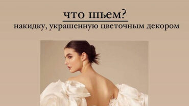 Съемную эффектную накидку с рукавами и украшенную цветами из ткани (внимание! Пошив платья и шлейфа не входит программу марафона!)