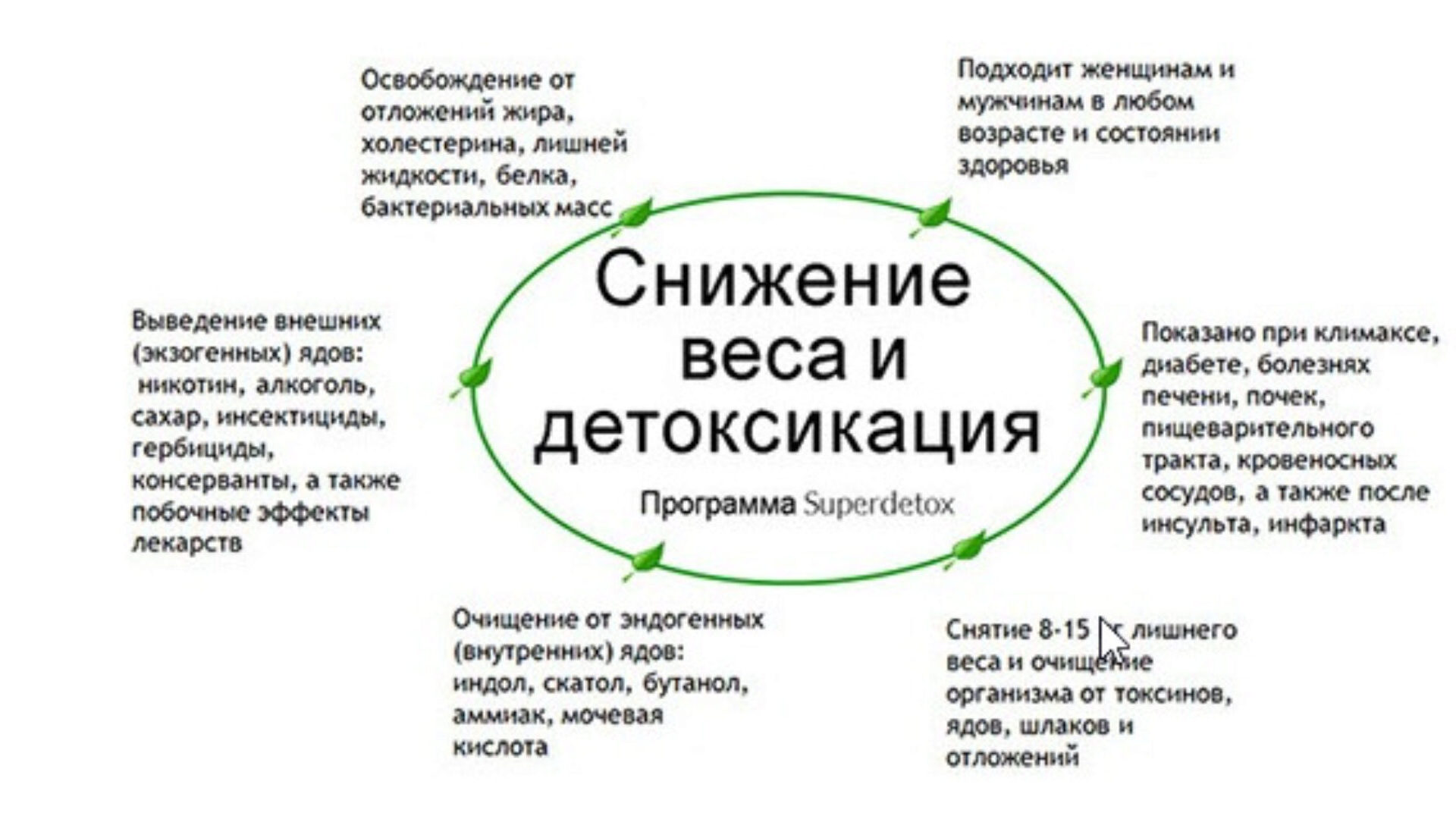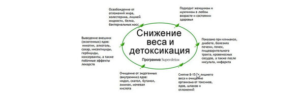 В результате получаем и снижение веса на 8-15 кг за курс и чистый, помолодевший здоровый организм, красивую внешность.