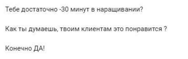 Да, Вы можете получить получить бесплатно фрагмент курса «Как сократить время наращивания и сохранить качество работы», просто напишите на почту или в телеграм