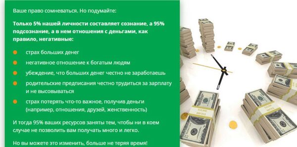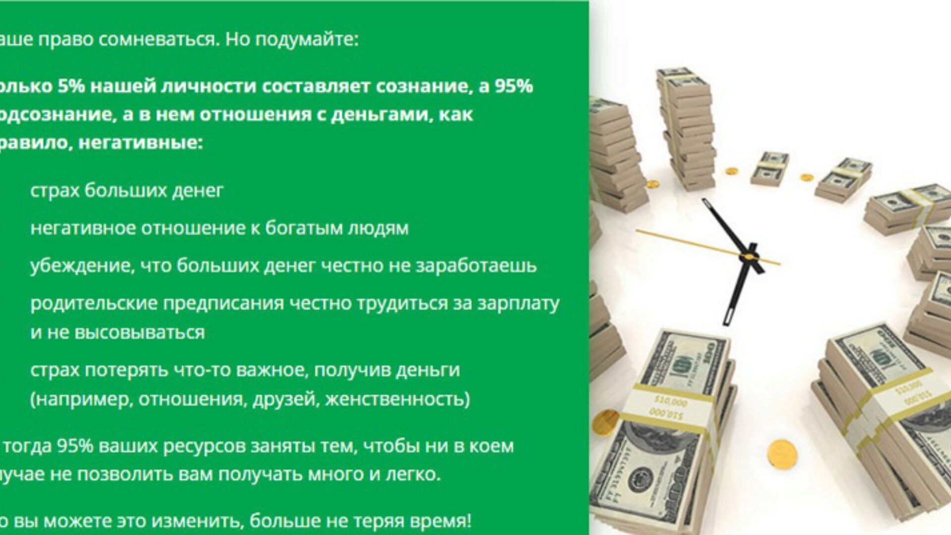 - Перепрограммируете свои убеждения о деньгах и о том, каких денег вы достойны