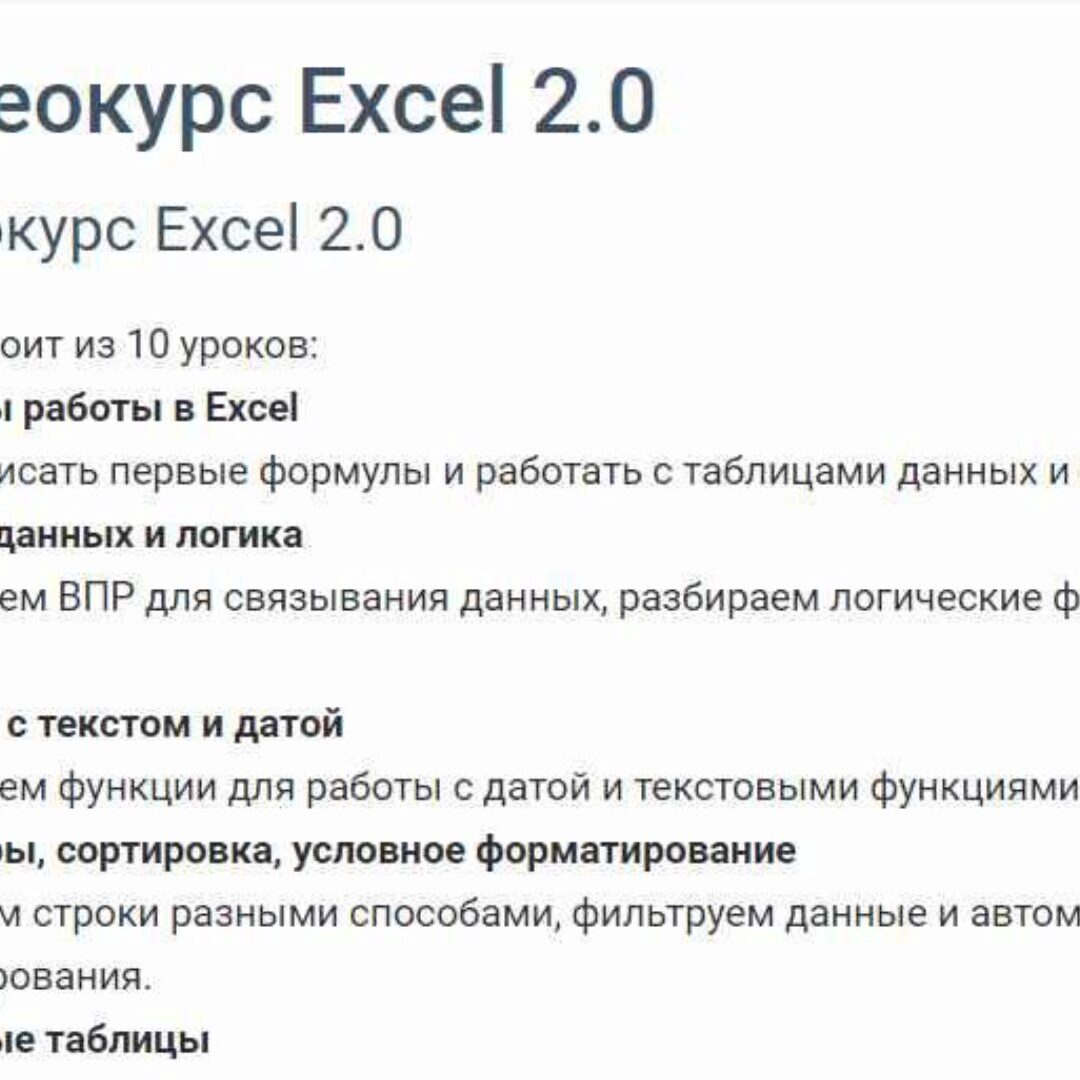 Обучение Excel от тренера Microsoft. Все 10 курсов (по макросам в том числе) Больше не нужно гадать какой у тебя уровень владения Excel. Идеально подходит, когда: нужно узнать всё про Excel как можно быстрее готовы интенсивно учиться привыкли экономно распоряжаться деньгами Оптимально купить доступ