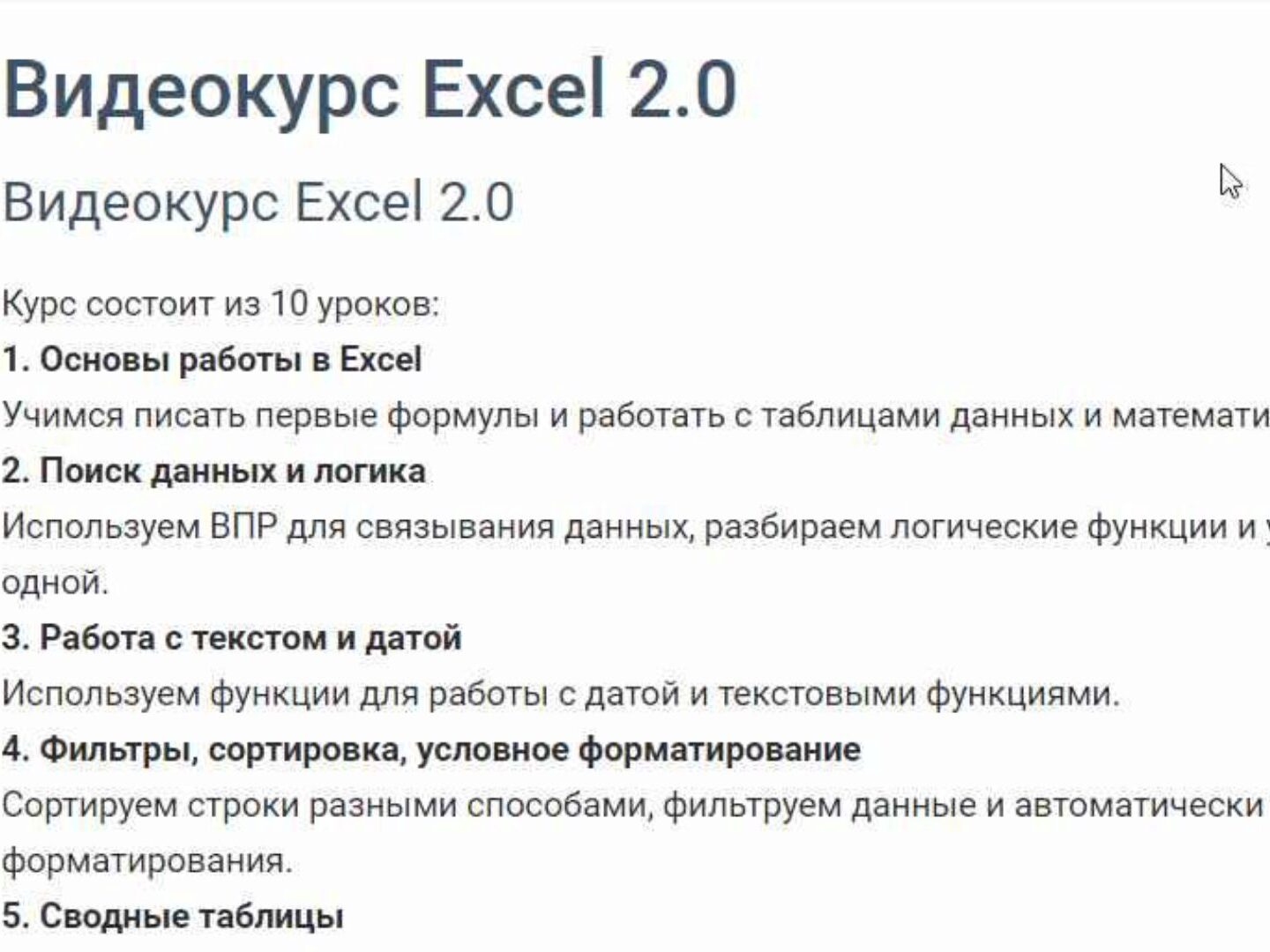 Отзывы о курсе [Geekbrains] Видеокурс Excel 2.0. 2021 от Людмилы Рейна