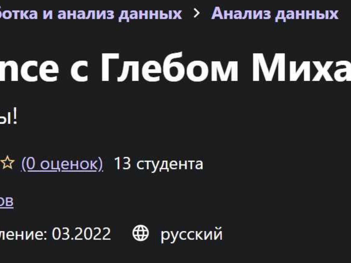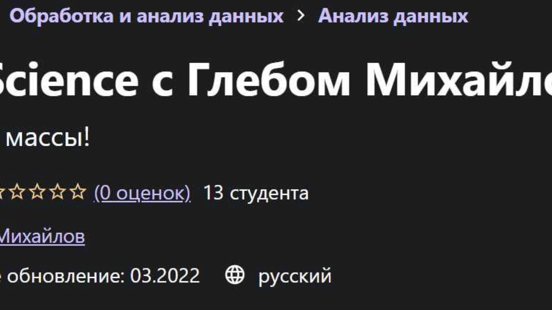 Курс Udemy - Data Science с Глебом Михайловым, автор Глеб Михайлов. Описание