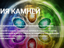 - В курсе даётся чёткая систематизация магических свойств камней и минералов, а сами образцы демонстрируются не только на показательных фотографиях, но и на примере камней из собственной коллекции автора.