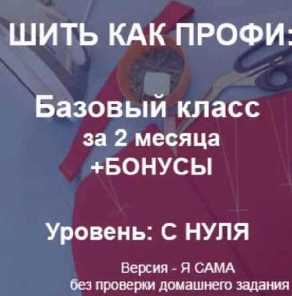 Базовый класс «Шить как профи»за 2 месяца, версия «Я САМА»без проверки домашнего задания, для тех, кто готов заниматься самостоятельно, но все же вопросы Вы можете задавать в любое время и в любом количестве.