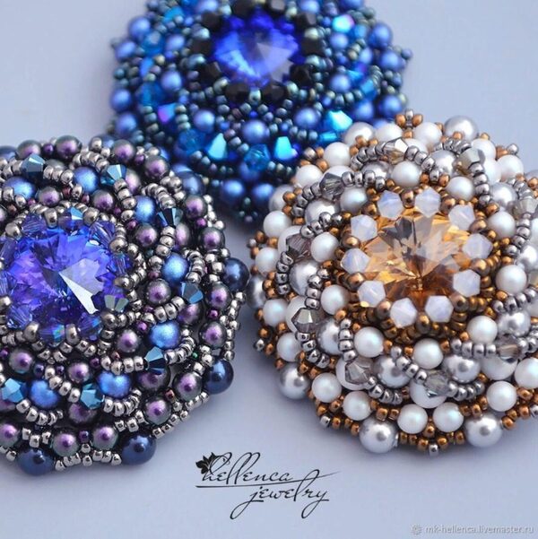 Курс Брошь Вихрь, автор hellenca_mk. Инструкция по плетению объемной броши с Rivoli 14мм в формате PDF.