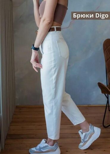 [Helpersew] Брюки Digo. ОБ 86-110. Рост 164. Брюки свободного силуэта на притачном поясе со шлевками. По переду с карманами. На задней половинке отрезная кокетка и накладные карманы. Линия талии на естественном месте. Застежка-гульфик на молнию спереди. Пояс застегивается на пуговицу.