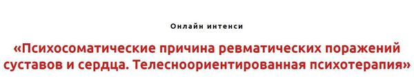 Курс Психосоматические причины ревматических поражений суставов и сердца, автор Игорь Атрощенко. ПСИХОСОМАТИЧЕСКИЕ ПРИЧИНЫ РЕВМАТИЧЕСКИХ ПОРАЖЕНИЙ СУСТАВОВ И СЕРДЦА. ТЕЛЕСНООРИЕНТИРОВАННАЯ ПСИХОТЕРАПИЯ