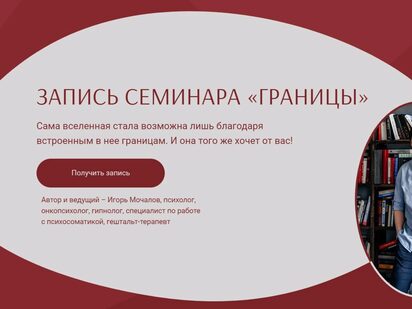 Внутри вас должен совершиться некий эмоциональный процесс — признание внутри себя этой правды и этого права. Данный семинар даст ход этому процессу и ответит на самые важные и наболевшие вопросы о границах.