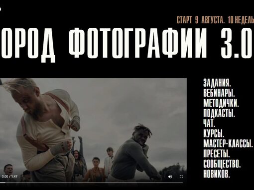 ОСВОЙТЕ С НУЛЯ ИСКУССТВО ФОТОСЪЕМКИ Самый полный онлайн-курс по основам фотографии теперь включает 13 занятий, обеспечивающих полнокровную техническую подготовку фотографа — как начинающего, так и имеющего разрозненные знания о предмете. Фундаментальная авторская программа по основам фотографии —