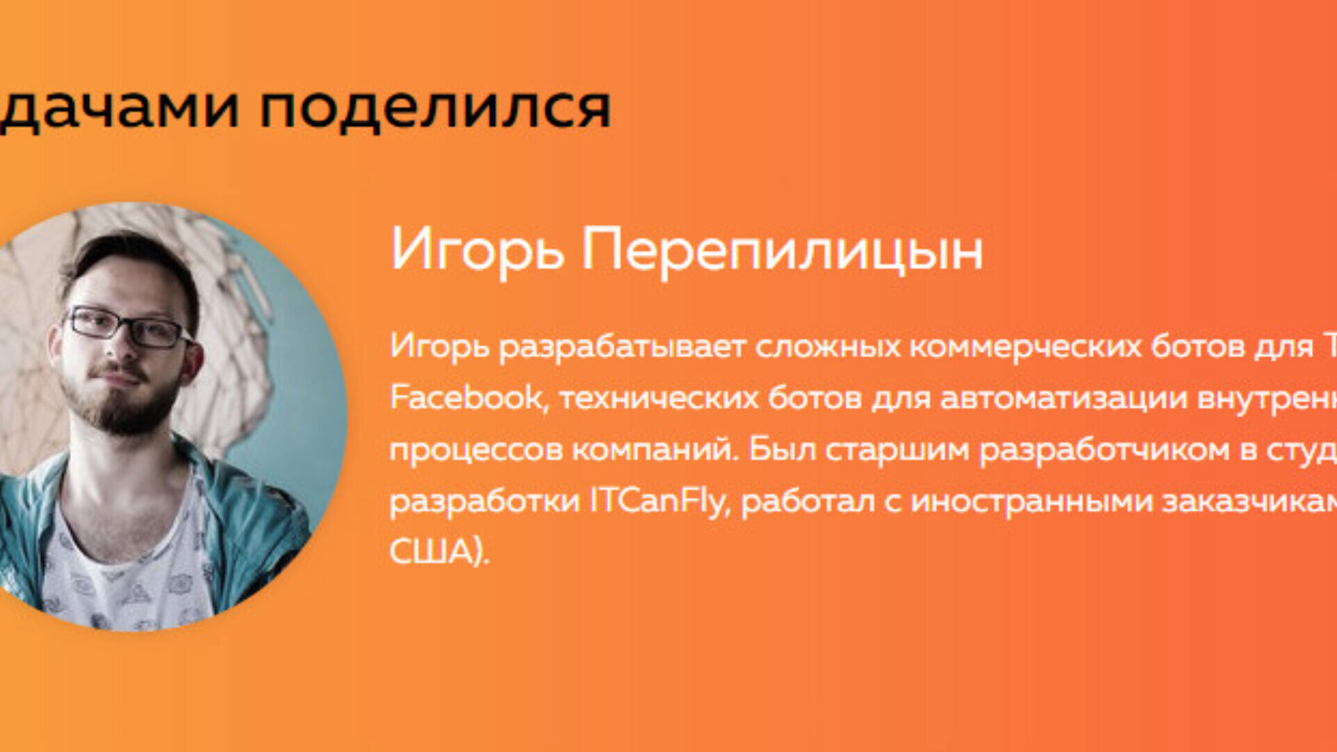 Отзывы о курсе «Чат-боты на Python» от Игоря Перепилицына
